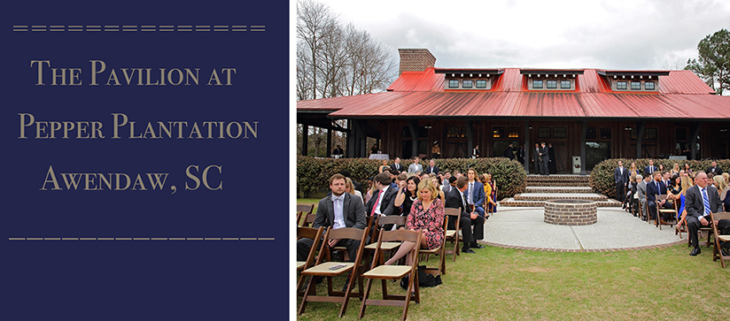 The Pavilion at Pepper Point Plantation is the favorite choices by many couples for hosting a great southern wedding event. The rustic outdoor wedding venue is fairly new located in Awendaw, SC. Once you take that turn from Hyw 17 into the venue you have a great sense of peace and tranquility from the stables, to the bridal cottage and horse that may linger by. The Main Hall with its red roof that is very unique, including the Lowcountry-styled-porches. Inside from the barn doors, you are exposed to beautiful wooden beams, massive fireplace. Outside you will see a huge fire pit, a waterfront gazebo. This barn rustic setting is the perfect tone for a wedding soiree.