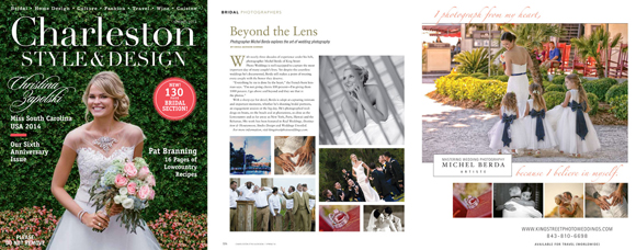 With a sharp eye for detail, Berda is adept at capturing intimate and important moments, whether he’s shooting bridal portraits, an engagement session or the big day. He’s photographed wed- dings on boats, on the beach and at plantations, as close as the Lowcountry and as far away as New York, Paris, Hawaii and the Bahamas. His work has been featured in Real Weddings, Destination & Honeymoon, Studio Design and Weddings Unveiled.